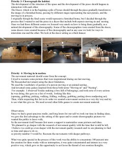 This resulted in a mixture of improvised tasks and some ‘set’ material to create this initial base for the work. This piece (with influences from No Exit and Waiting for Godot), has a particularly distinct nature, we desire to push the limit to see how long we can keep people interested when virtually nothing is happening. This is, at least, the beginning section of the piece that we spent time formulating, with very recognisable body postures and background sounds that creates an illusion that one is in a normal waiting room, we gradually realise, that this is definitely not the case.